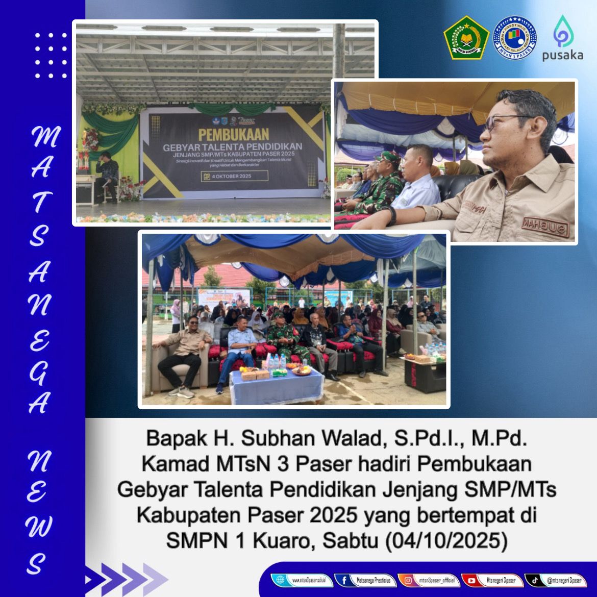 Kepala MTs Negeri 3 Paser Hadiri Kegiatan Pembukaan Gebyar Talenta Pendidikan . [...] 13 Oktober 2025 Oleh superadmin Pendidikan,Prestasi 0 Komentar Read more...