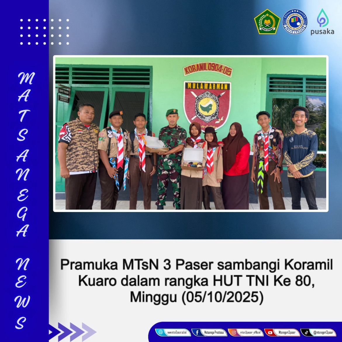 HUT TNI Ke 80, Pramuka MTs Negeri 3 Paser Ucapkan Selamat Ke Koramil Kuaro . [...] 13 Oktober 2025 Oleh superadmin Kunjungan,Pramuka 0 Komentar Read more...